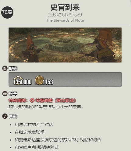 在《最终幻想14:水晶世界》里,奇塔利族是其中一个蛮族。不少玩家都对如何开启这个蛮族的任务充满好奇。玩家需先将自身等级提升到70级,并且完成任务【宁静】。之后,做完两个系列的前置任务,就能开启奇塔利族的蛮族任务。下面,就由小编为大家详细介绍奇塔利族蛮族任务的开启方法,希望这篇文章能对大家有所帮助!
