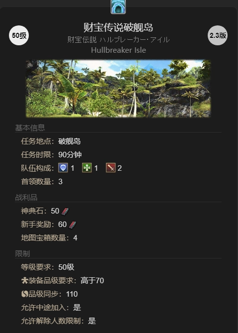 通过刷财宝传说中的破舰岛副本获取