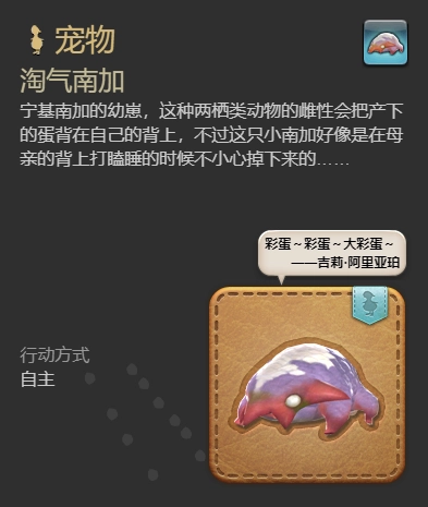 在《最终幻想14》里,淘气南加是一种呈粉红色的两栖类生物。有些玩家不清楚淘气南加宠物该如何获取。其实,通过开启特殊配给货箱,或者在财宝传说破舰岛刷宝箱,就能得到它。接下来,小编就为大家详细介绍《最终幻想14:水晶世界》中淘气南加宠物的获得方法!