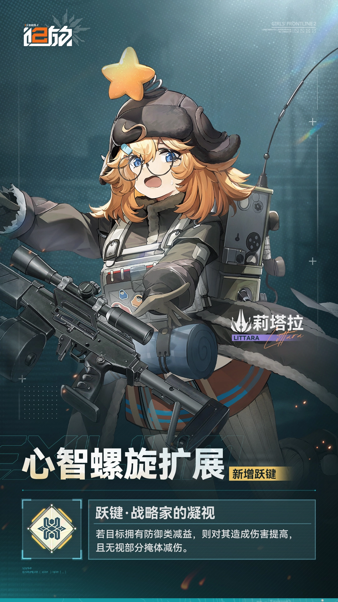跃键·战略家之凝视:当目标存在防御类减益状态时,对该目标造成的伤害会提升,并且能够无视一定程度的掩体减伤效果。