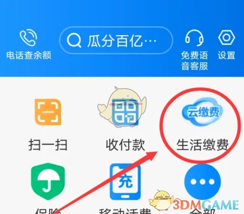 2. 打开和包APP,进入首页后,点击【生活缴费】选项。
