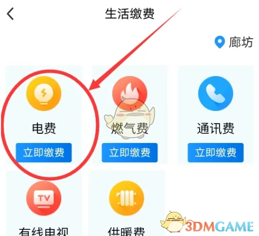 3、来到生活缴费页面,选中【电费】后马上缴费就行。