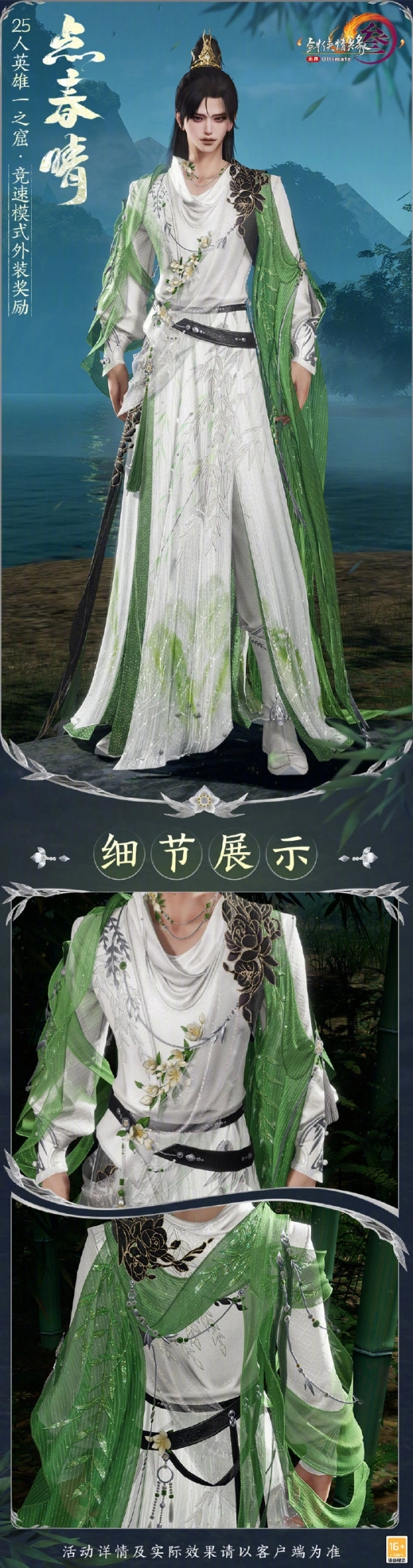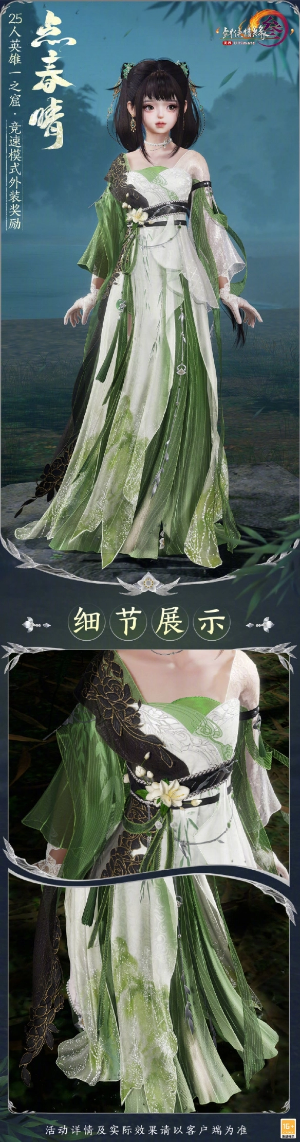 点春晴是25人英雄一之窟竞速奖励外观,不少玩家好奇点春晴长啥样。这套时装主要采用白色与新绿色,并用叶子加以点缀。玩家参与25人英雄一之窟竞速,有机会获得该外观。下面就由小编为大家详细带来《剑网3》一之窟竞速奖励外观点春晴的介绍!