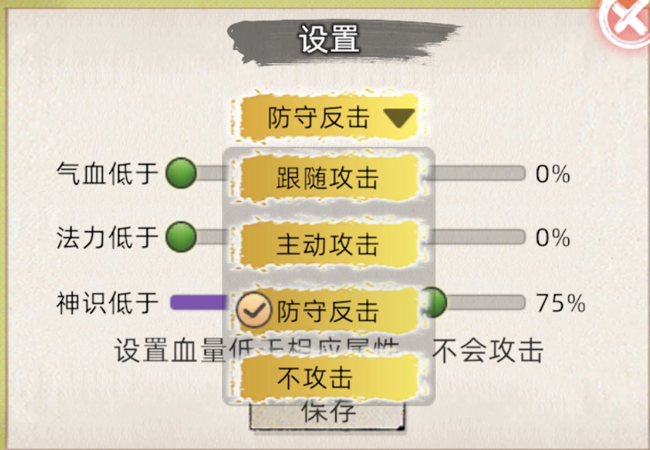 点击法宝规则,即可对法宝的攻击模式以及攻击条件进行设置。