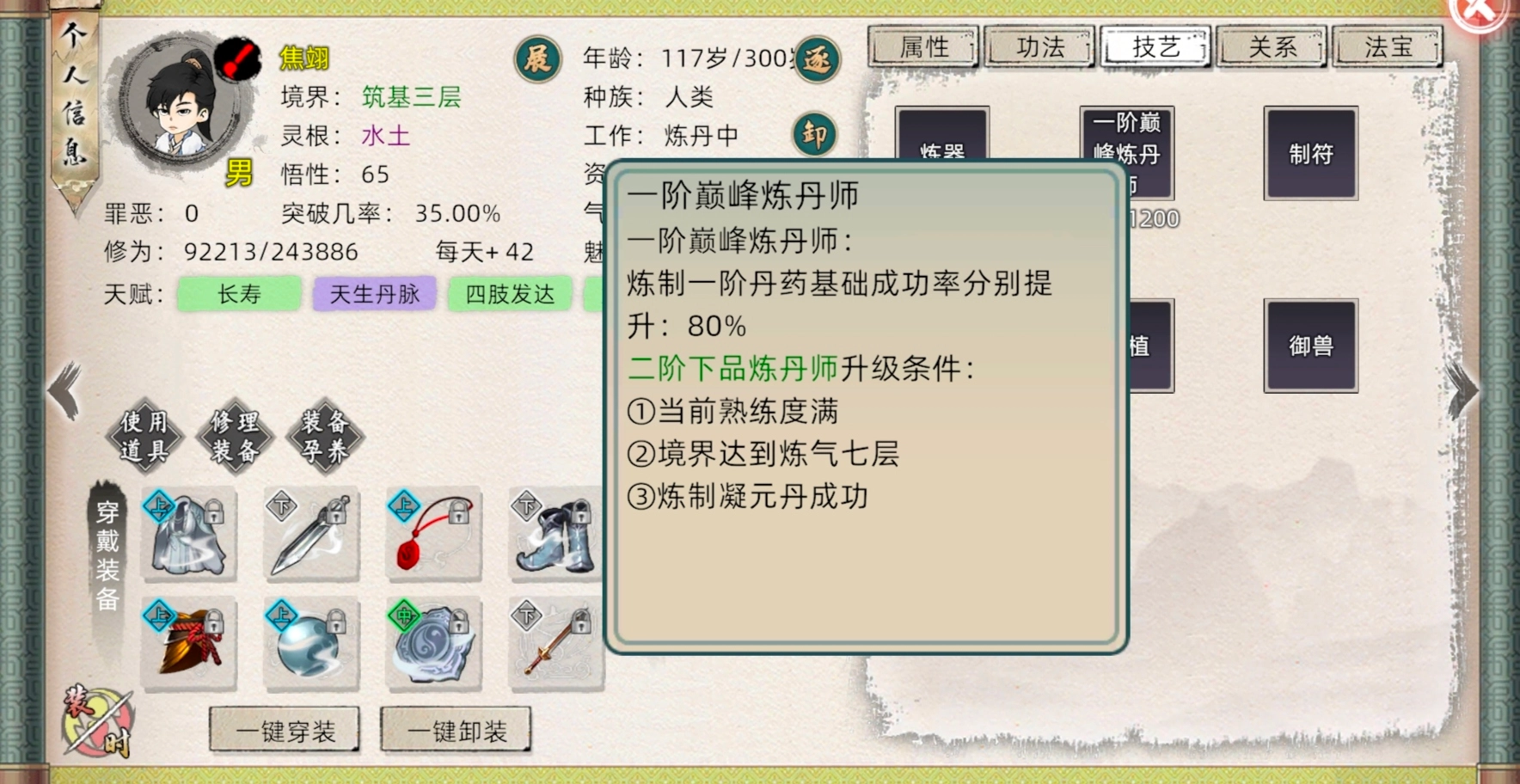 以上就是潮游速递站整理带来的《修仙家族模拟器2》新手引导教程之百艺精通,更多精彩内容,请点击关注潮游速递站,小编将持续为您更新!