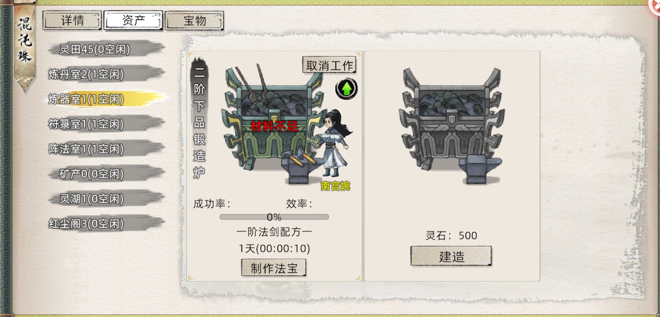 点混沌珠→资产→点击相应的技艺室