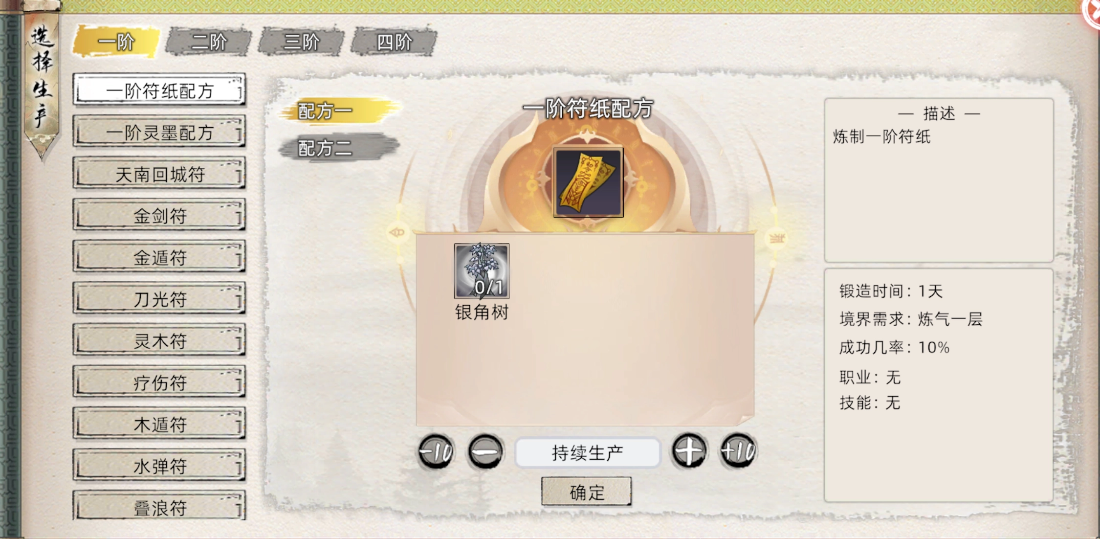 与练器和炼丹不同的是,需要先炼制通用材料,然后再用通用材料炼制成品,同时要学习了该符的技能才能炼制该符,职业要求也更精确。