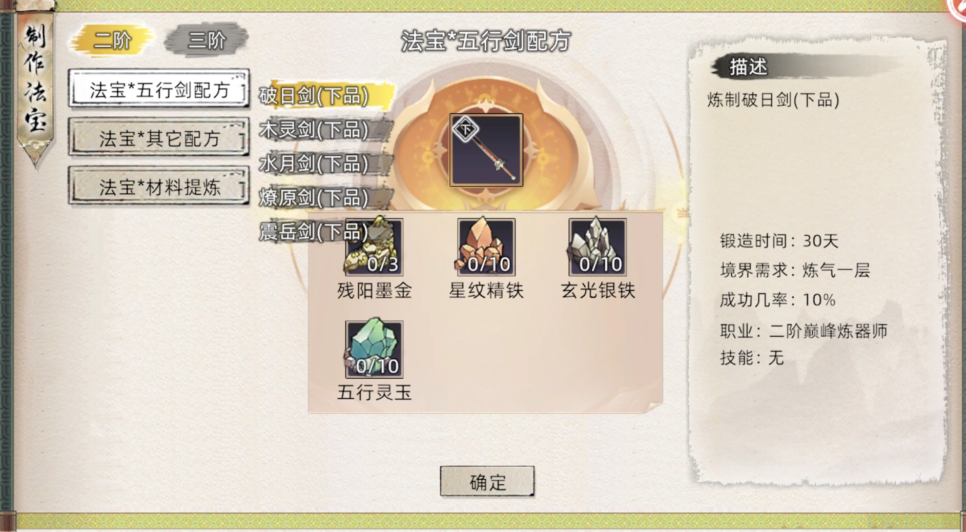 与炼丹区别是升到二阶炉多了制作法宝