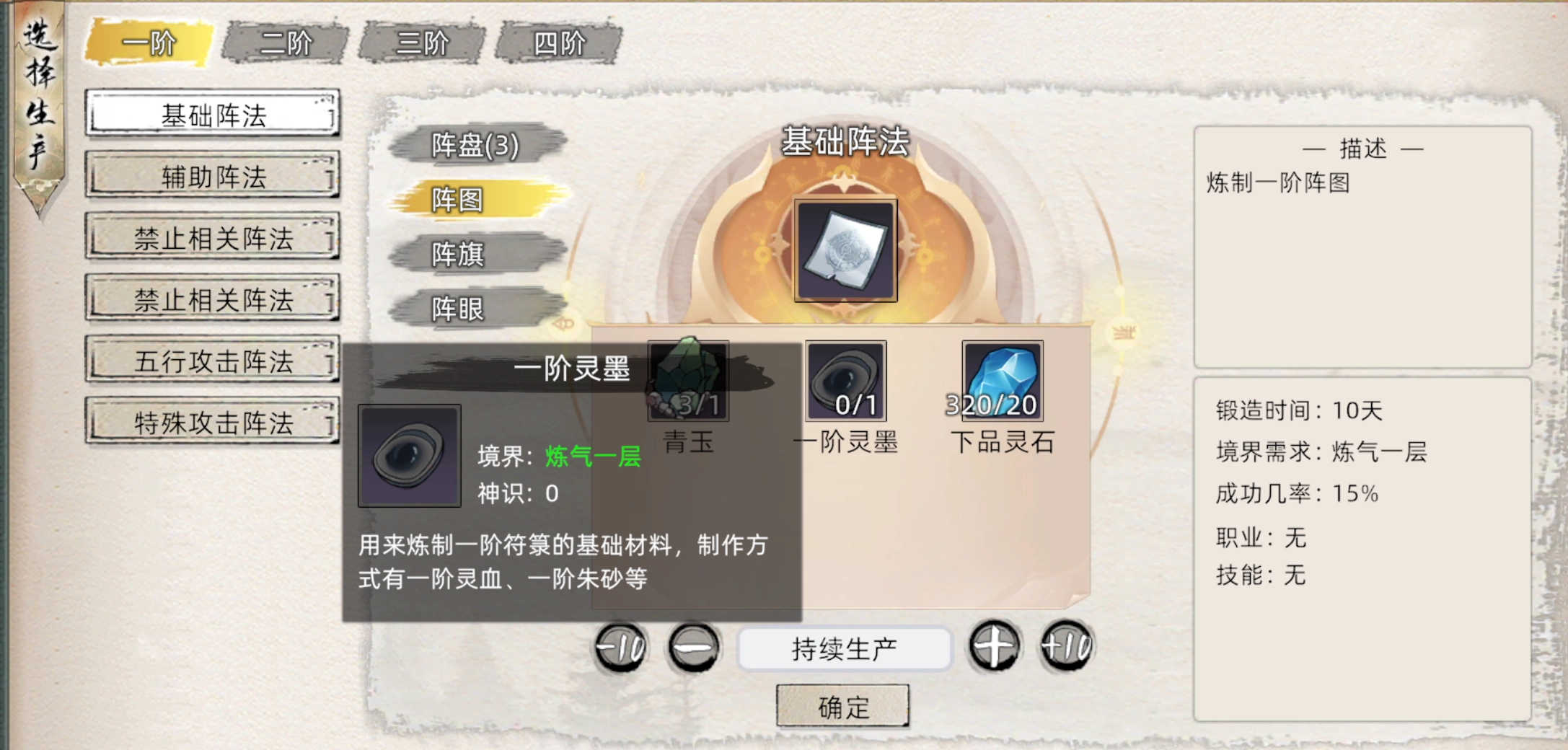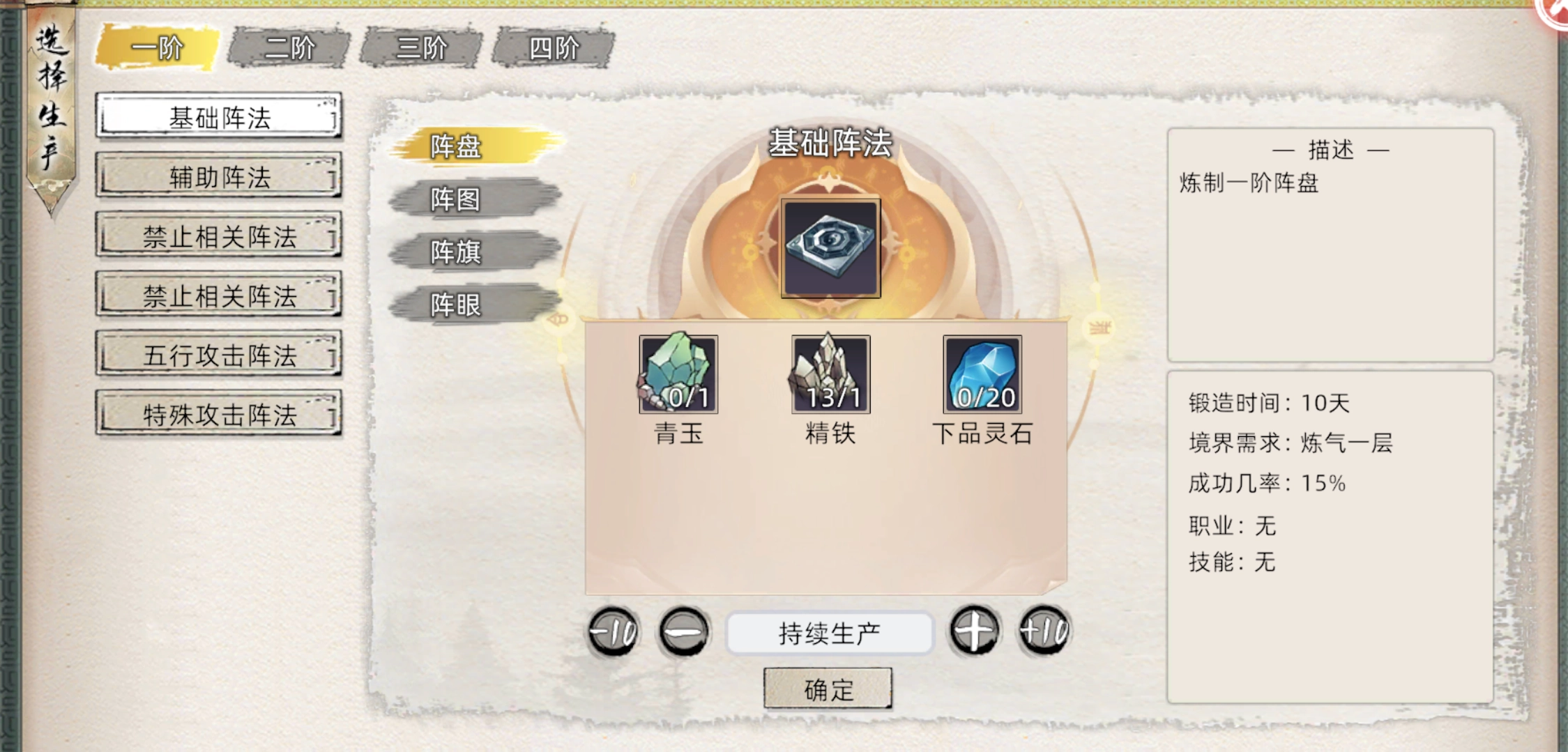 同炼符一样需要先炼制通用材料,然后再用通用材料炼制成品阵法,到阵法这己经没有品质概念。