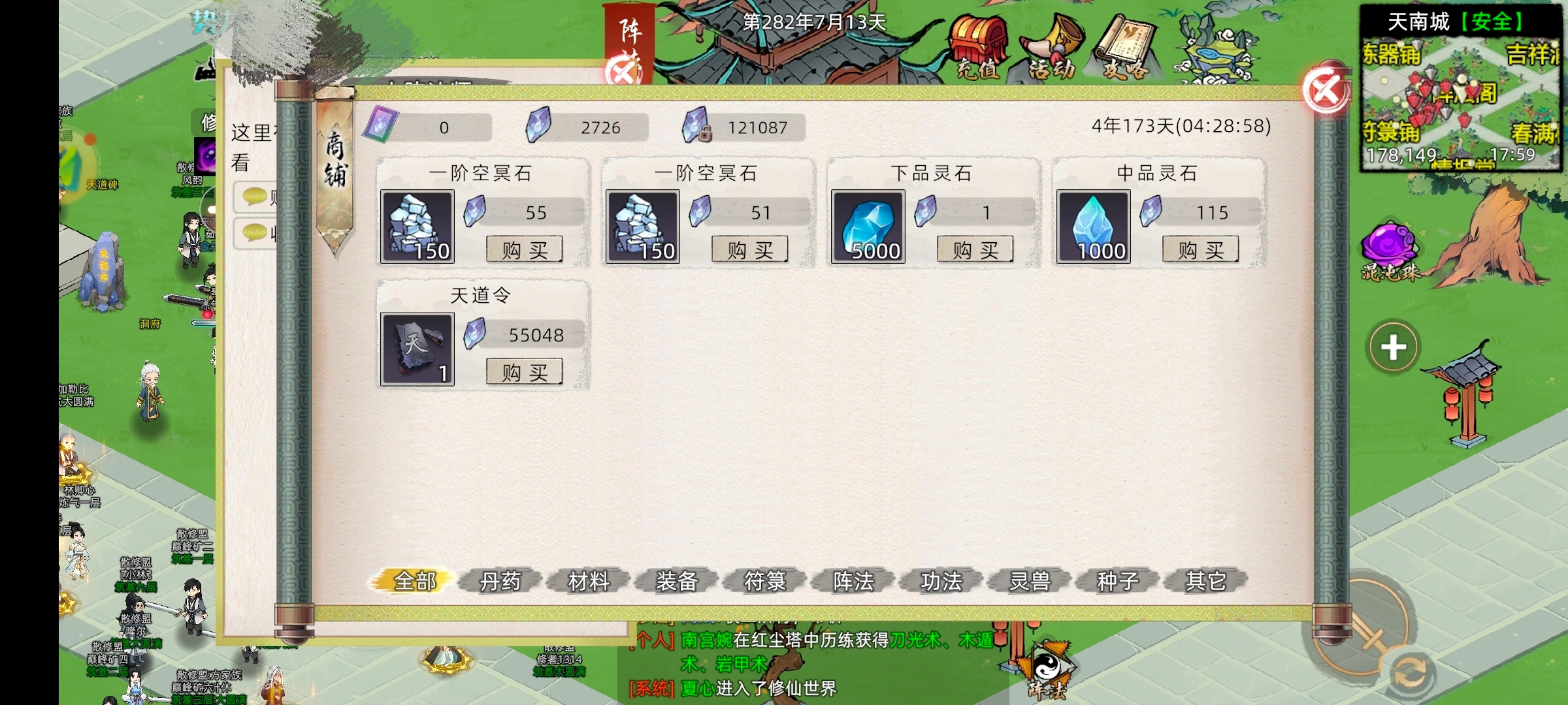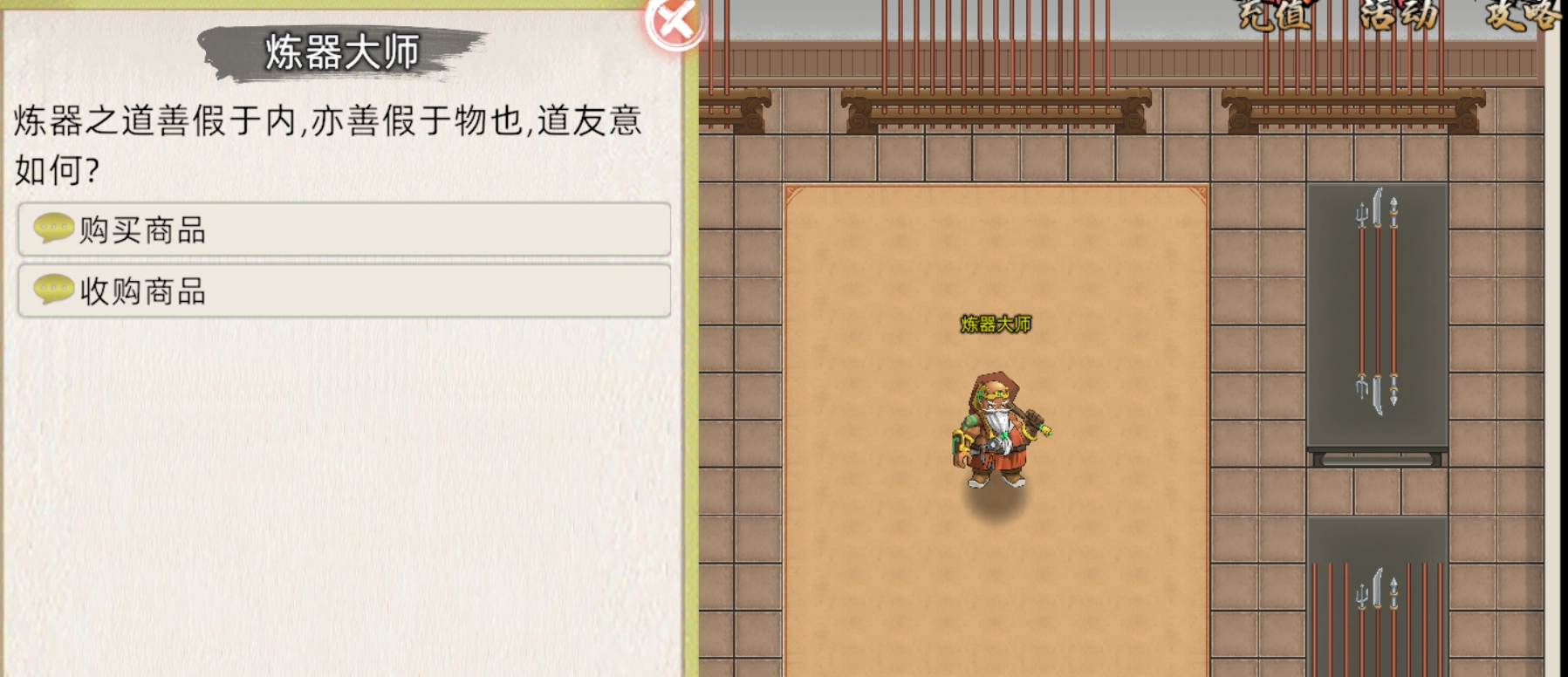 点击商铺进入后里面有收二阶矿的NPC,当然我们为什么要卖给回收价这么便宜的NPC呢,去摆摊区卖给其他道友不好吗。