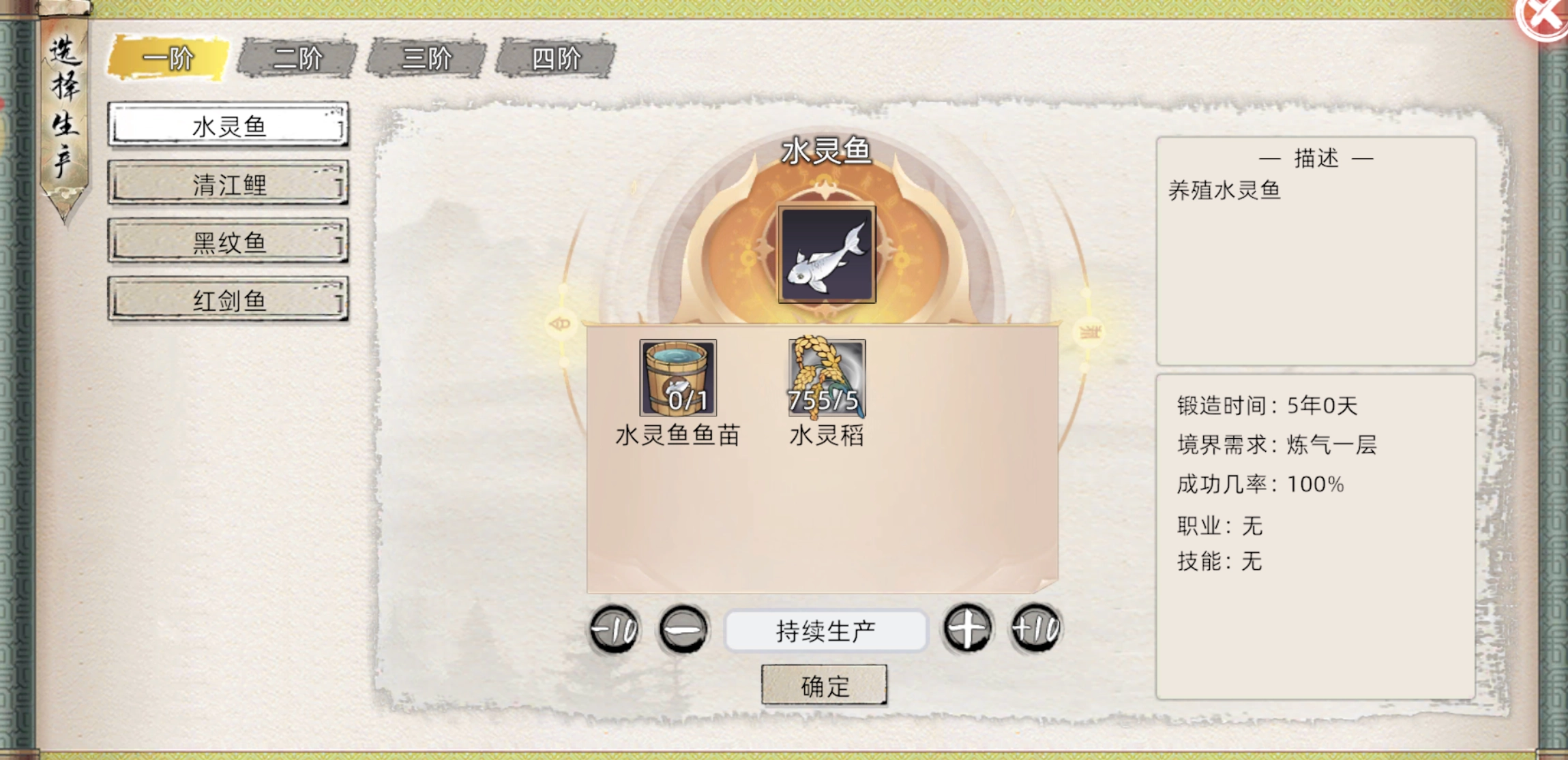 若要在混沌珠灵湖进行养殖,需前往天道石的天道商店购买鱼苗(灵湖数量与每种鱼苗购买数量一致)。接着,在灵田种植一些灵米类灵植。之后,点击水灵鱼的持续生产功能,并安排御兽属性高的弟子负责此项工作。待弟子获得相关御兽职业后,更换养殖其他高级鱼类,以便快速提升鱼职。需要注意的是,御兽属性会影响养殖出变异鱼(其增益比普通鱼更高)的概率以及鱼的成熟速度。