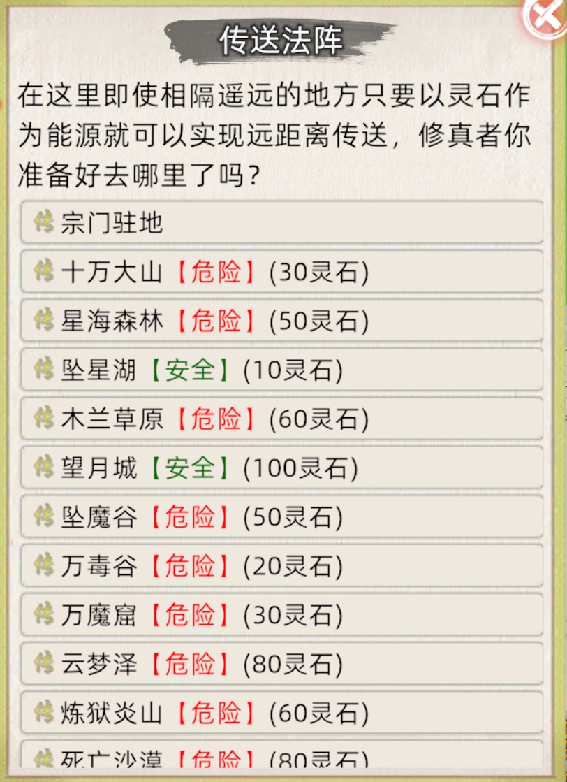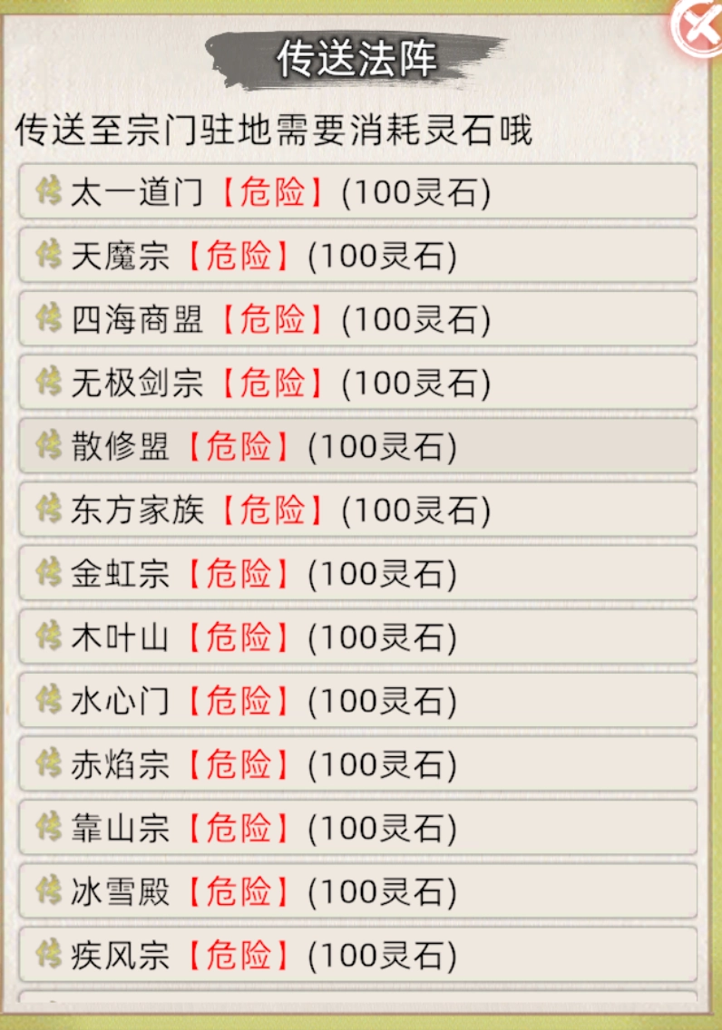 中央传送阵点击宗门驻地