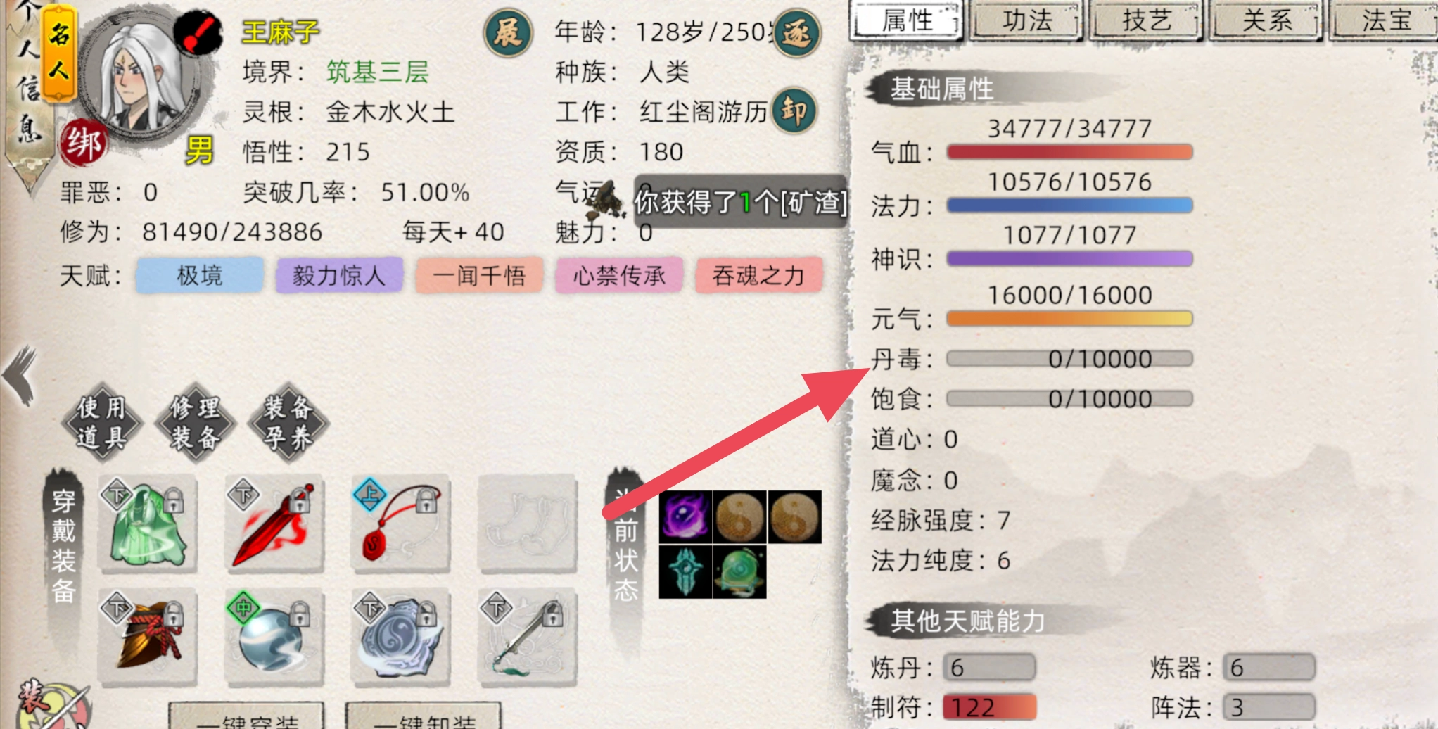 点击右+号→特殊技能→装上修练→然后点红色那个即可,注意别点错因为同是特殊的疗伤和这图标很像