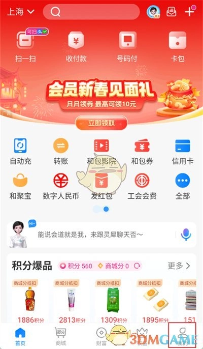 1. 第一步,打开已下载完成的和包app,进入软件界面后,点击右下角的【我的】选项。