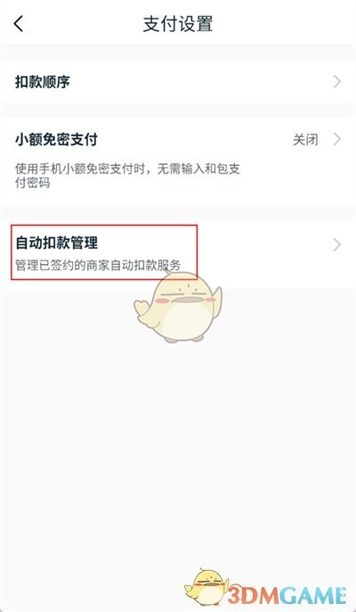 4、接下来点击【自动扣款管理】选项,进入自动扣款服务界面,把想要取消自动续费的服务关掉就行。
