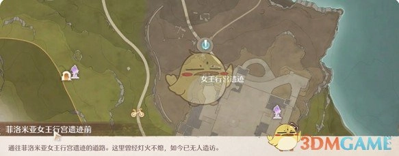 1. 首先传送到菲洛米亚女王行宫遗迹前方,接着朝着东南方向行进。