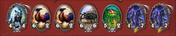 3、基本阵容为:陆行鸟、狼爹、瑞文再搭配其他野兽,其中若野兽为甲虫则最佳,因其亡语能够召唤出新的甲虫。