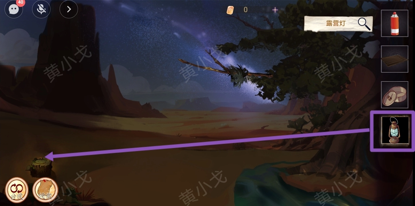 21.(沙漠)把【露营灯】放到树桩上照明