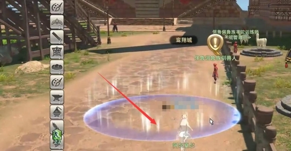 4、接着转身走进鸾翔城的蓝色光圈,总共有3个蓝色光圈,最后要找的是【海岸鸟群市场】对应的光圈。