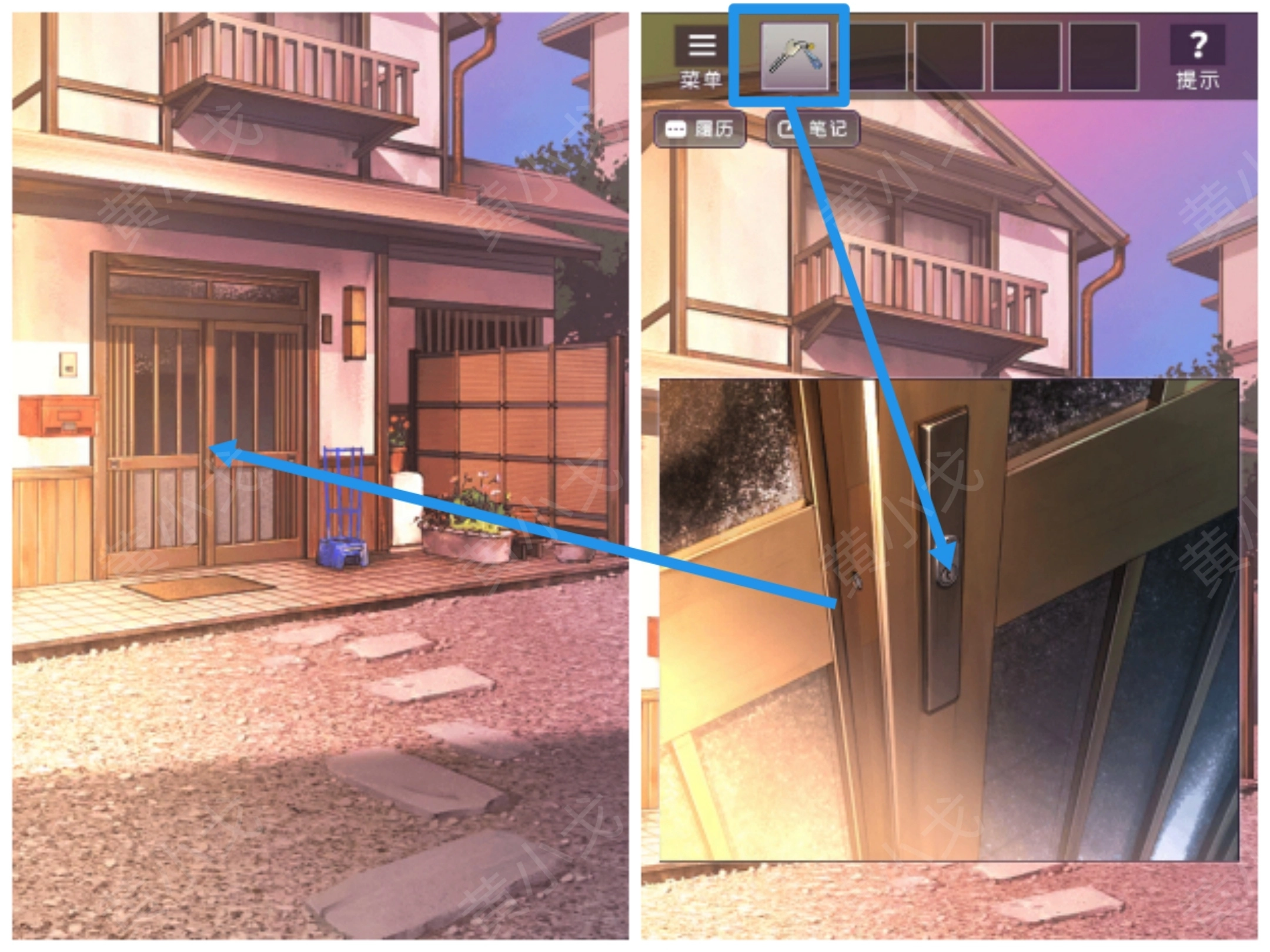 4.点击门上的锁,用【钥匙】打开