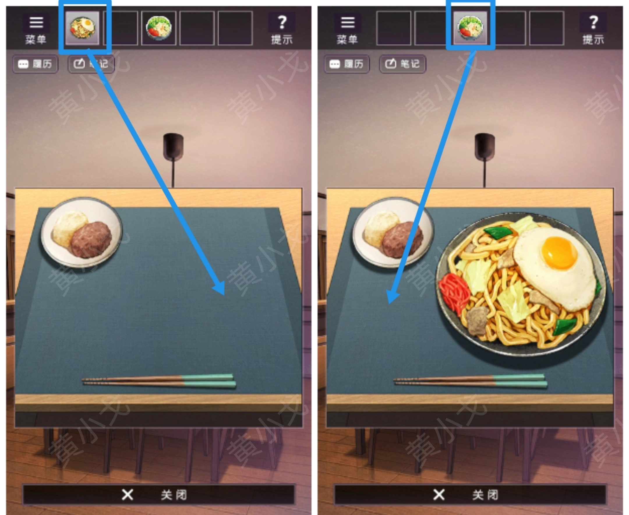 5.点击餐桌,获得【炒面】和【便签】