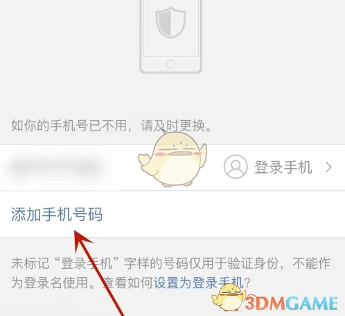 5、进入手机号码页面,选择“添加手机号码”这一选项。