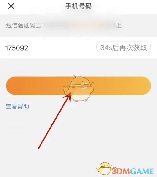 8、接着输入短信验证码,然后选择“下一步”按钮。