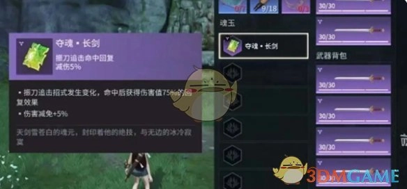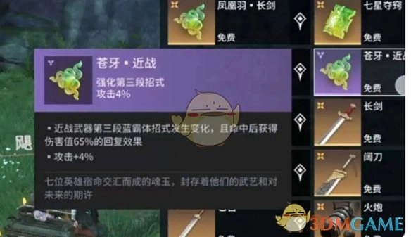 2、魂玉作用:当近战武器的第三段蓝霸体招式击中敌人后,能获取相当于伤害值65%的回复效果。