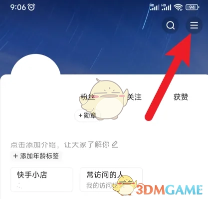 1. 在快手极速版“我”的界面里,点击右上角的【三】图标。
