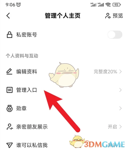 3、在管理主页界面中点击【管理入口】。