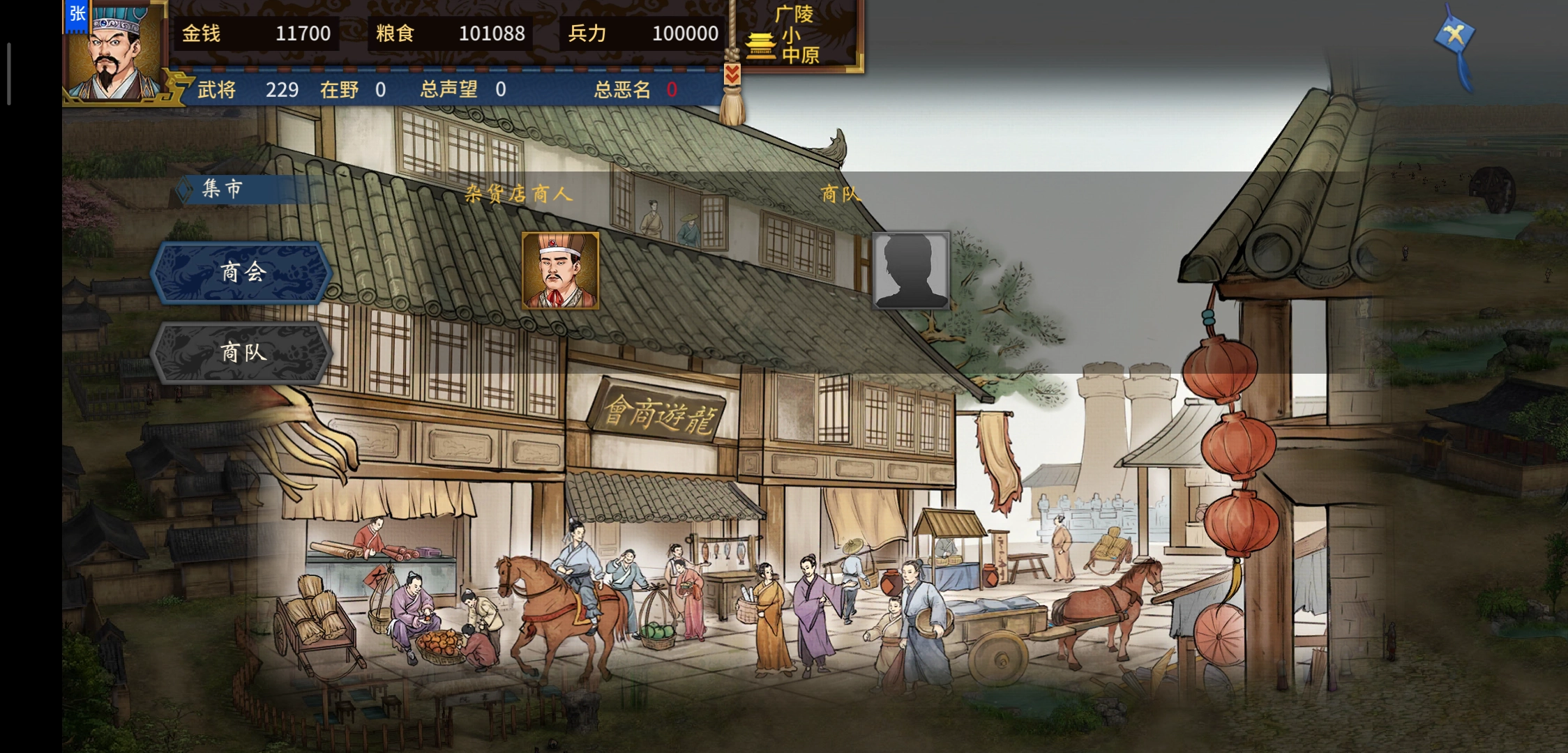 可以购买大量宝物和他们交易粮食金钱等…