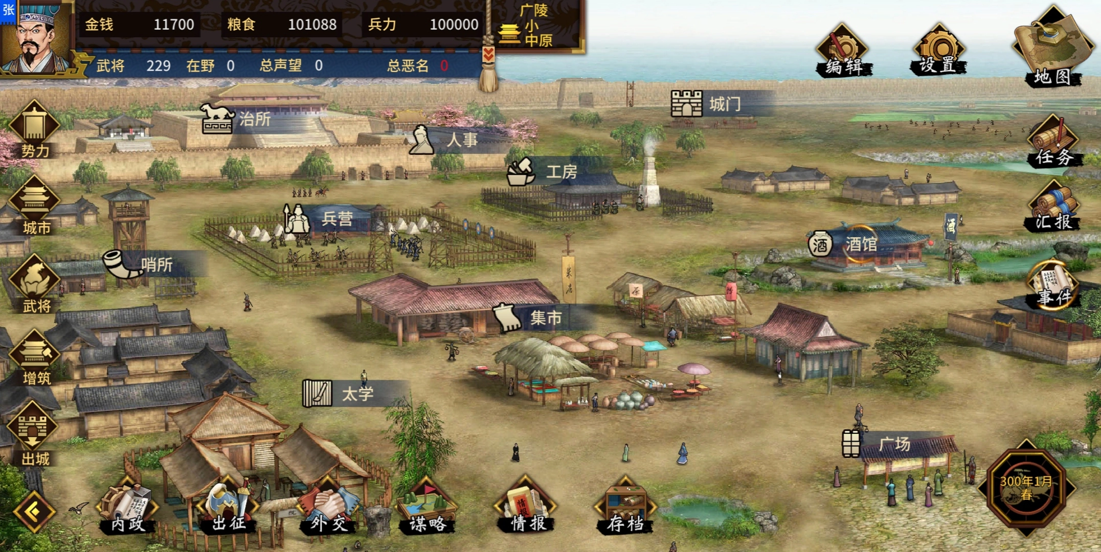 挑选一名武将进行侦查,武将的人事等各项属性越高,侦查效果就越好。若你已掌握其他城市的情报,便能知晓该城市的所有情报信息。