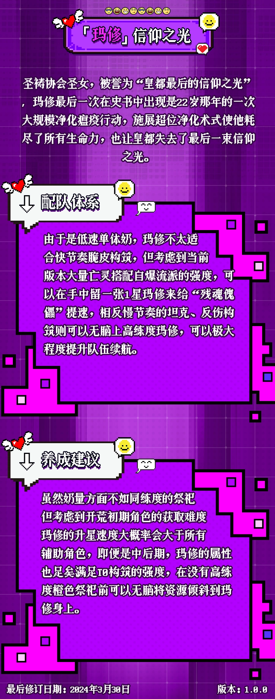 本篇为大家呈上《老婆们大战牛头人》中玛修的配队与养成攻略!玛修,那可是信仰之光,属于T1梯队的强力单体治疗角色。她身为圣祷协会的圣女,获誉“皇都最后的信仰之光”。玛修最后一次于史书中现身,是在其22岁时参与的一场大规模净化瘟疫行动,当时她施展超位净化术式,这一行为耗尽了她全部的生命力,致使皇都也失去了那最后一束信仰之光。