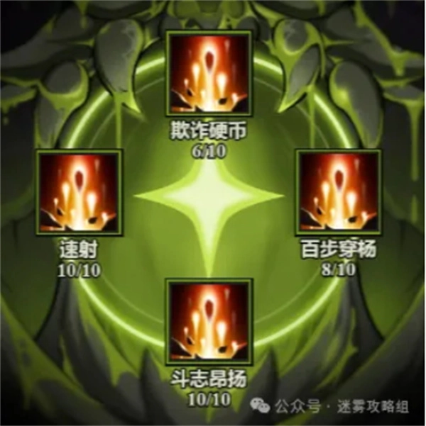 推荐技能组合:欺诈硬币、百步穿杨、斗志昂扬以及速射。
