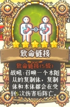 思路:让远程处于前排,快速复制多个单位,如此每个单位承受的伤害就较低。不过群体恢复的法师容易聚集在一起,因此可带上恢复结界,也能考虑把一个牧师换成带“零(威能:生命分流)”,这能提升其他单位的最大生命值,使其不容易突然死亡。