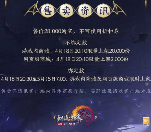 2、游戏内商城和网页商城将限量上架2W份不绑定款,售完即止,不再补货。
