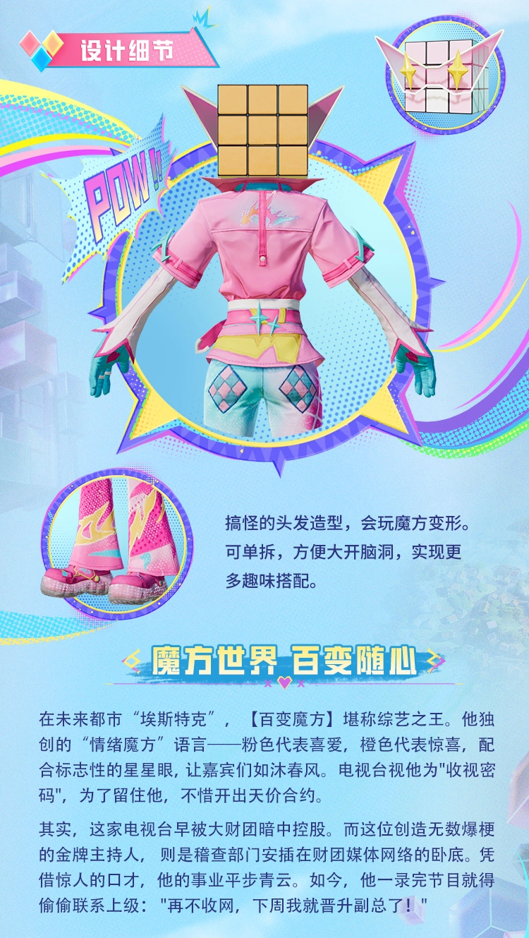 2、角色套装的设计以机能风服饰作为基底,巧妙融入能够动态变换的魔方纹路。肩甲与腰部的立方体模块,在角色移动过程中会展现出光影流转的奇妙效果,就好像把 “会呼吸的魔方” 穿在了身上一般。