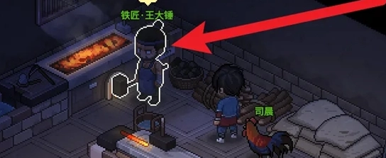 1. 走进无名小村的铁匠铺,随后与铁匠王大锤交谈。