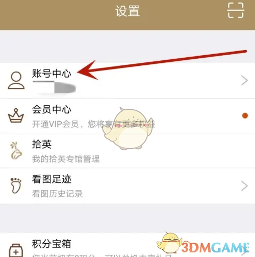 3、点击箭头所指的“账号中心”选项