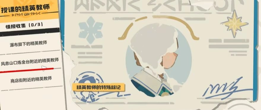 三位精英教师分散在主城的不同地方:第一位在魔法学院的露天课堂,要通过完成魔法史问答小游戏,才能解锁与之对话;第二位处于可可果广场喷泉的右侧,与之对话需要提交5个可可果;第三位则藏在海湾栈道的木箱堆后面,使用精灵感应技能便会有高亮提示。值得注意的是,教师的刷新是有时间限制的,小编提议在游戏内的正午时段集中去完成相关任务。