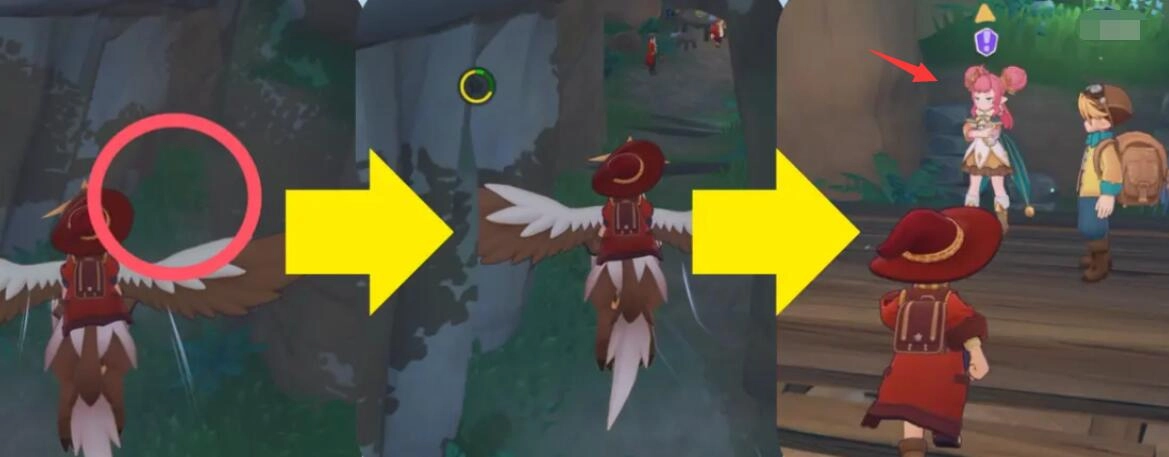接取任务要前往商业街附近的广场,与公主对话。任务首阶段要定位四位携带精灵的魔法师。其中,第一位魔法师在月牙镇上方的传送点附近,由于没有遮挡,可直接与之交互;第二位魔法师在商业街东南角的大树后面,需要绕着树干走才能触发交互。第三、四位魔法师分别在风眠圣所的左上角和右上角区域,而第四位魔法师需要完成前置对话,才会激活坐标显示。