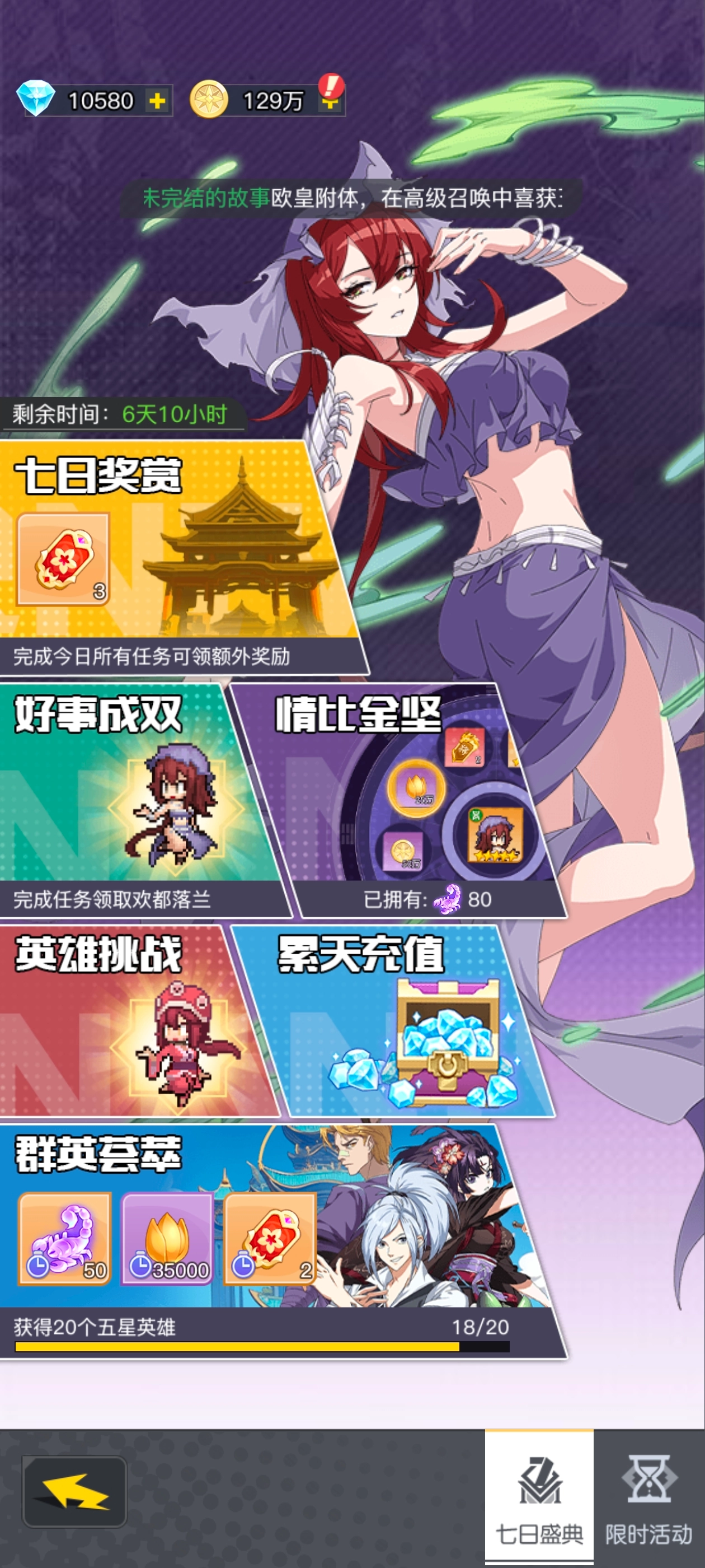 英雄挑战,每天拉满资源后战力没得提了在打,争取拿到最高的奖励。