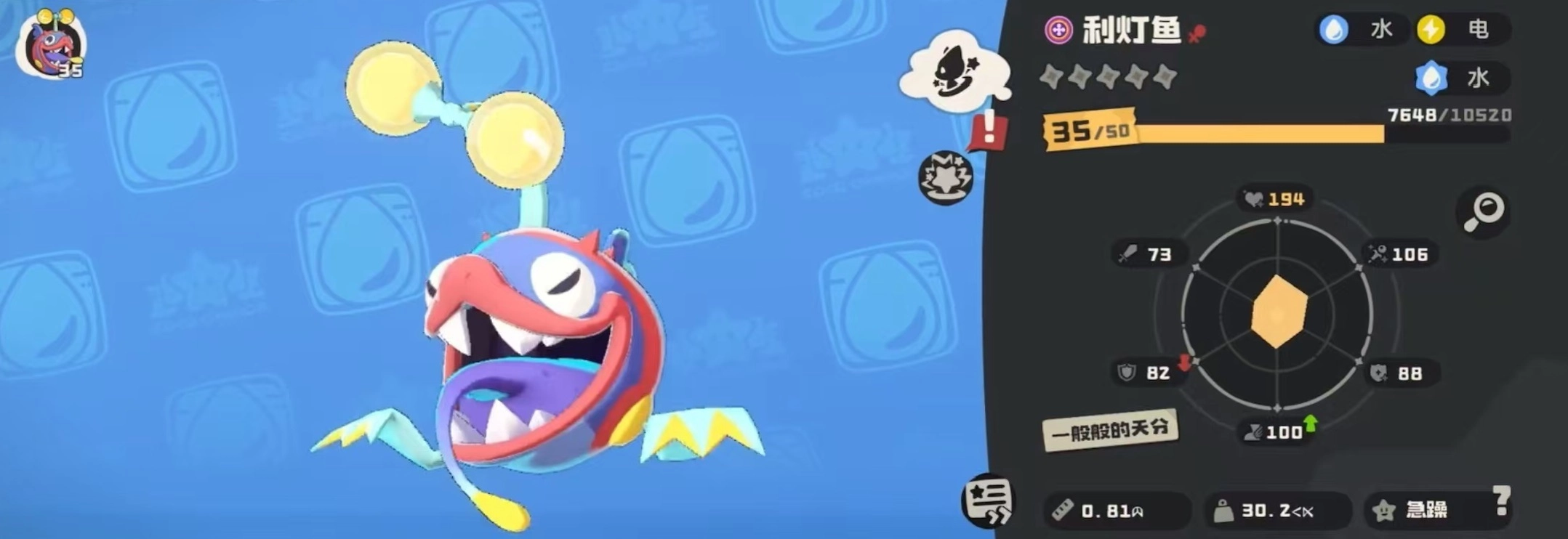 以上便是潮游速递站整理并带来的洛克王国世界中利灯鱼种族值介绍,更多相关游戏攻略,敬请关注潮游速递站!