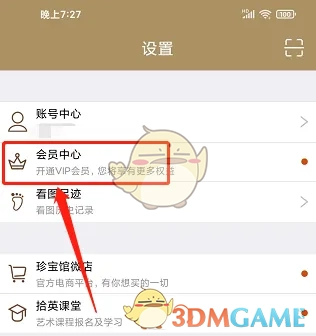 2. 进入设置窗口,点击会员中心选项。
