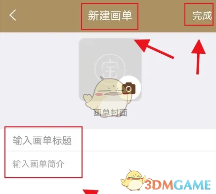 3、最后,填写画单的标题、简介等基础信息,点击“完成”,即可成功新建画单。