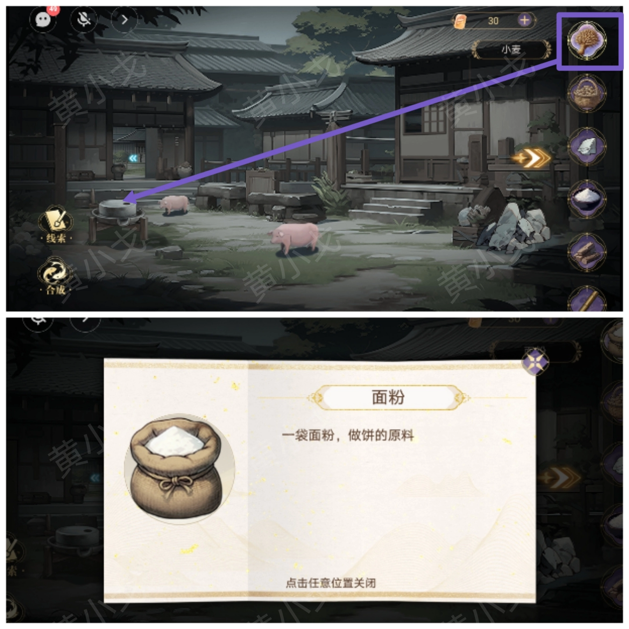 10. 将【小麦】置于磨盘上进行研磨,从而得到【面粉】。