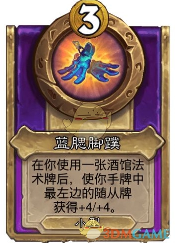 效果:当你释放一张酒馆法术时,让你手牌里最左边的随从牌得到+4/+4。
