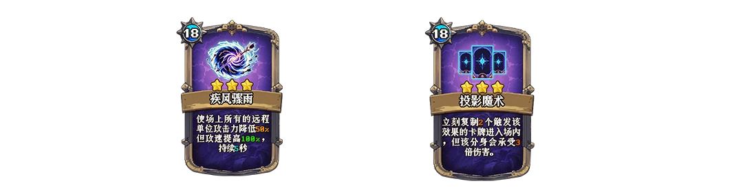 运用「投影魔术」来增多后排远程单位的数量,随后施展「疾风骤雨」以提升远程输出的攻击速度。