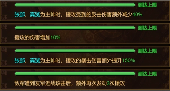 蛮训练的提升不仅体现在攻击力与防御力方面,幅度相当巨大。而且其第二词条为“敌军遭到友军近战攻击后,额外触发3次援攻”。结合兵种特性原本能触发的1次援攻,这就意味着总共能够触发4次援攻!