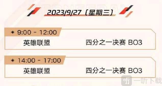 4、2023年9月27日 (星期三) 四分之一决赛比赛时间如下: